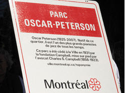 Le parc Campbell-Centre, situé dans l'arrondissement Sud-Ouest de la ville de Montréal, porte depuis le 12 septembre le nom du célèbre pianiste Oscar Peterson, à qui l'on a rendu hommage à l'occasion de l'ouverture du 24e festival de La Petite-Bourgogne, quartier où il a grandi. Un autre musicien montréalais fort connu, Oliver Jones, était présent pour célébrer la mémoire de son ami. «Oscar Peterson était un pianiste très talentueux et énormément discipliné. Il mérite vraiment qu'un parc porte son nom», a-t-il indiqué, visiblement très ému.
