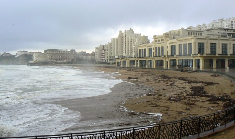 Les vagues de l’océan étaient fortes aujourd’hui à Biarritz. Le vent soufflait fort et les averses tombaient dru par intermittence.
