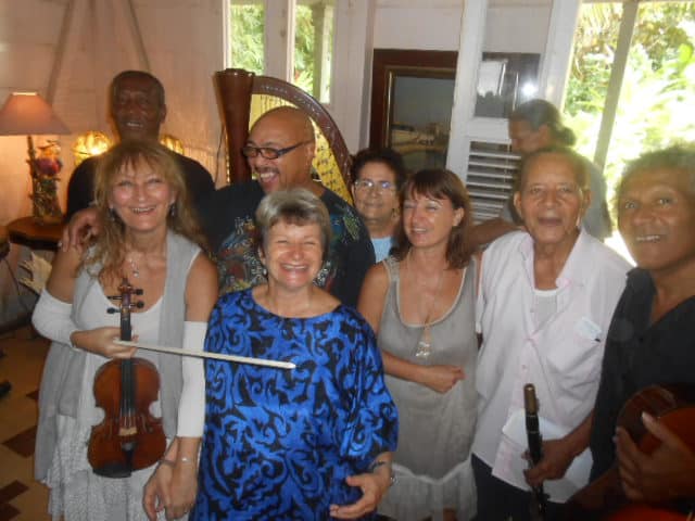 Point à Pitre, ont envoûté les mélomanes antillais dans cette belle demeure qu’occupent Lucien et Marie France Casalan. Un magnifique concert (de la musique acoustique!) qui a permis au public très recueilli, puis manifestant sa joie à la fin des morceaux, d’écouter ces talentueux artistes que je me dois de citer: Claire le Fur et Frédérique Garnier (harpes), Cécile de Rocca Serra (violon, alto), le guyanais Raymond Gratien (guitare), le martiniquais Guy Louiset (steel pan), et les guadeloupéens Jean Claude Antoinette et Sissi (percussions). Un répertoire très bien ciblé et varié nous conduisant dans le monde entier (Vivaldi, Debussy, Villa Lobos, Piazzolla)….