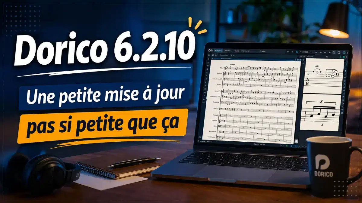Steinberg vient de publier Dorico 6.2.10, une mise à jour mineure sur le papier, mais loin d’être anecdotique dans la pratique. Deux semaines après Dorico 6.2, cette nouvelle version apporte plusieurs ajustements bienvenus dans des domaines très concrets : la tablature guitare, le texte, les triolets, les changements d’instruments, certains détails d’interface et, bien sûr, la version iPad. Elle corrige aussi plus de 30 problèmes, ce qui en fait un téléchargement recommandé pour les utilisateurs réguliers du logiciel.